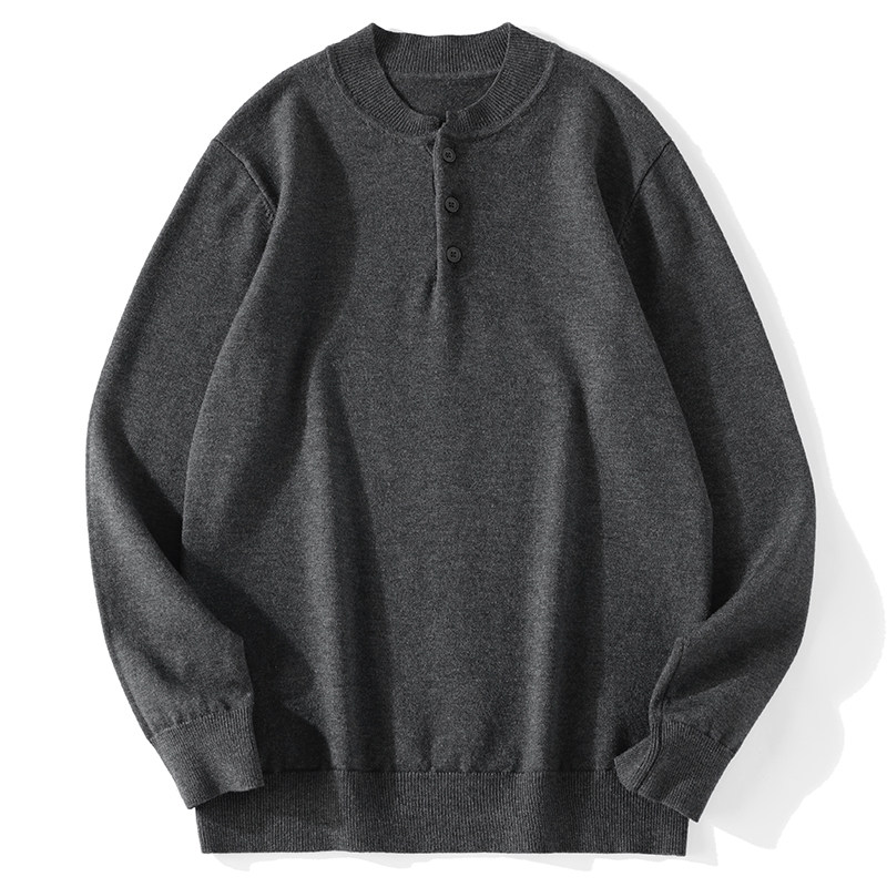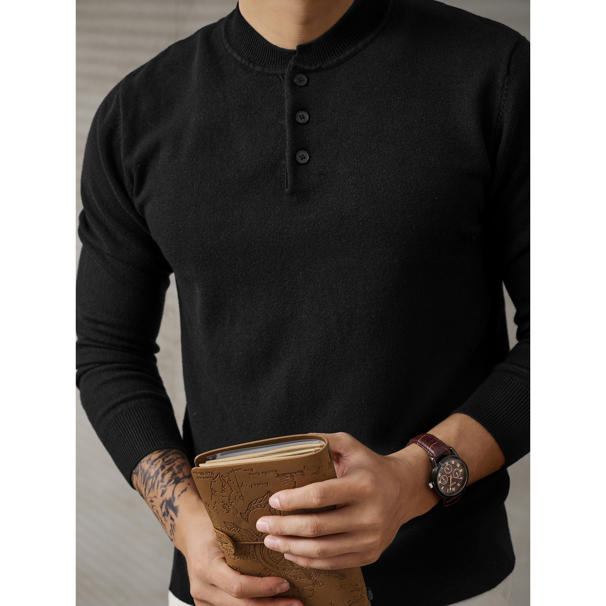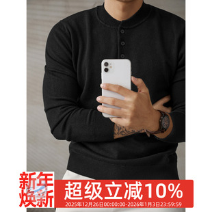 男休闲百搭长袖 针织衫 打底毛线衣 潮流气质范黑色亨利领修身 LUUD
