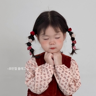 韩系博主同款 复古小碎花灯芯绒大肠发圈头绳皮筋女扎头发饰品飘带
