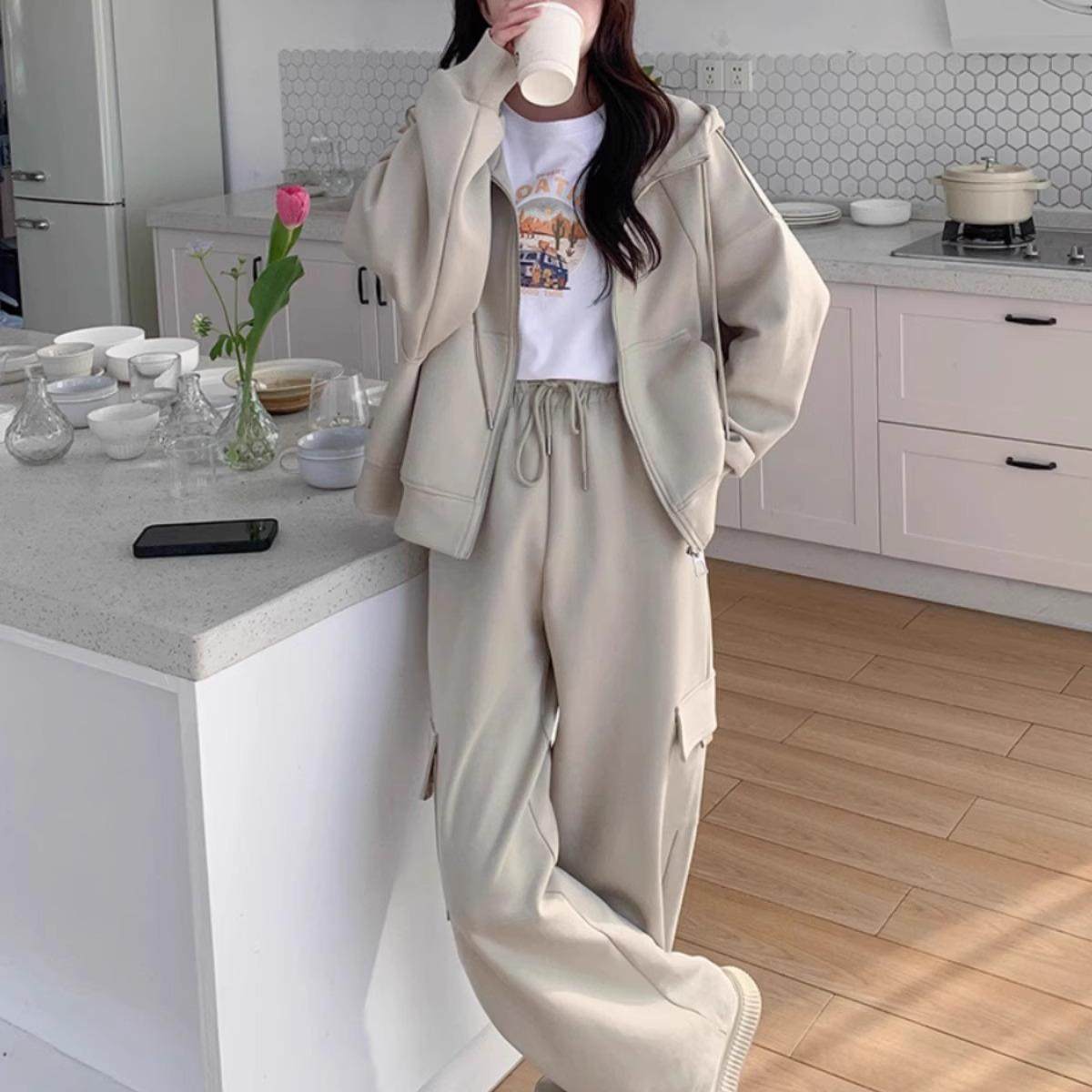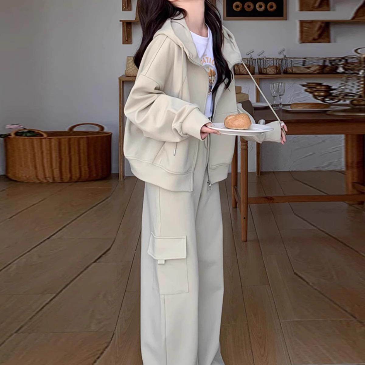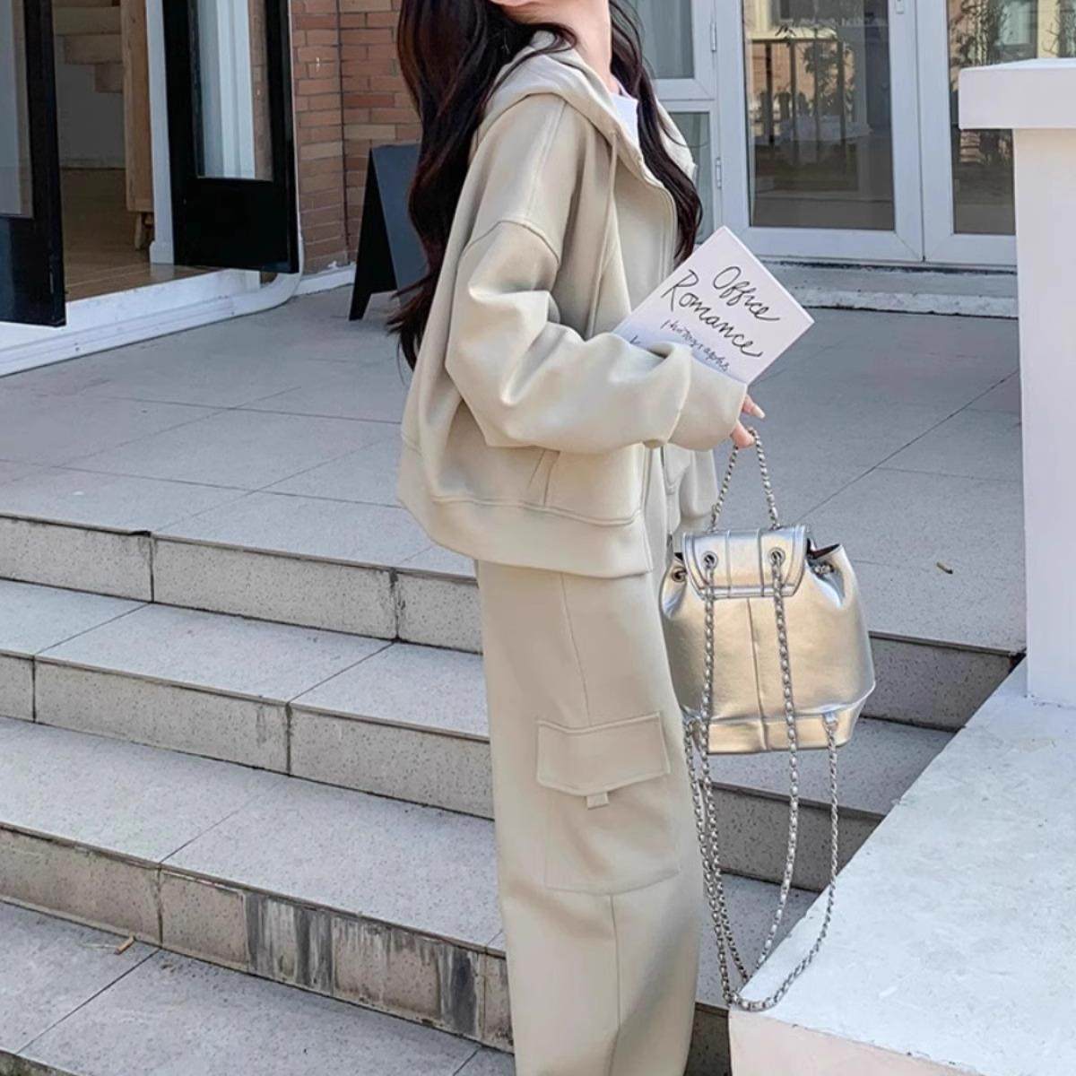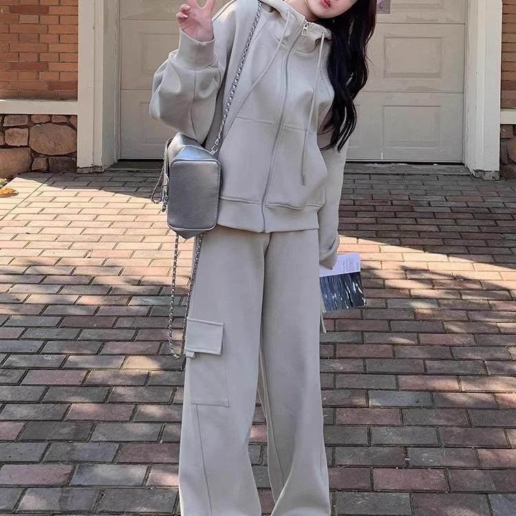 两件套 小个子运动连帽卫衣外套卫裤 学院风休闲套装 女2025春秋新款
