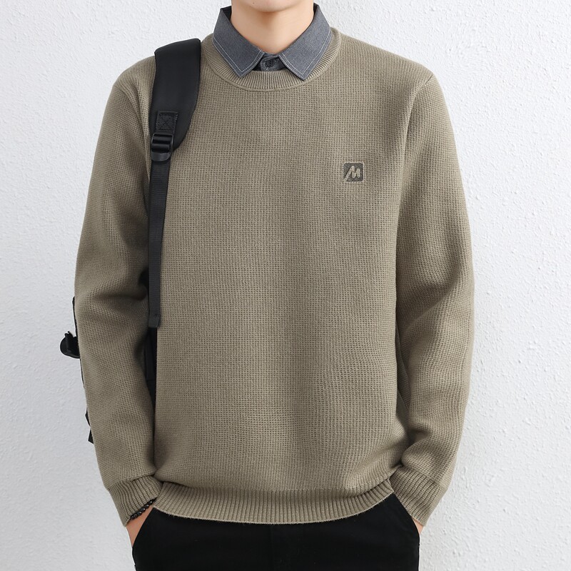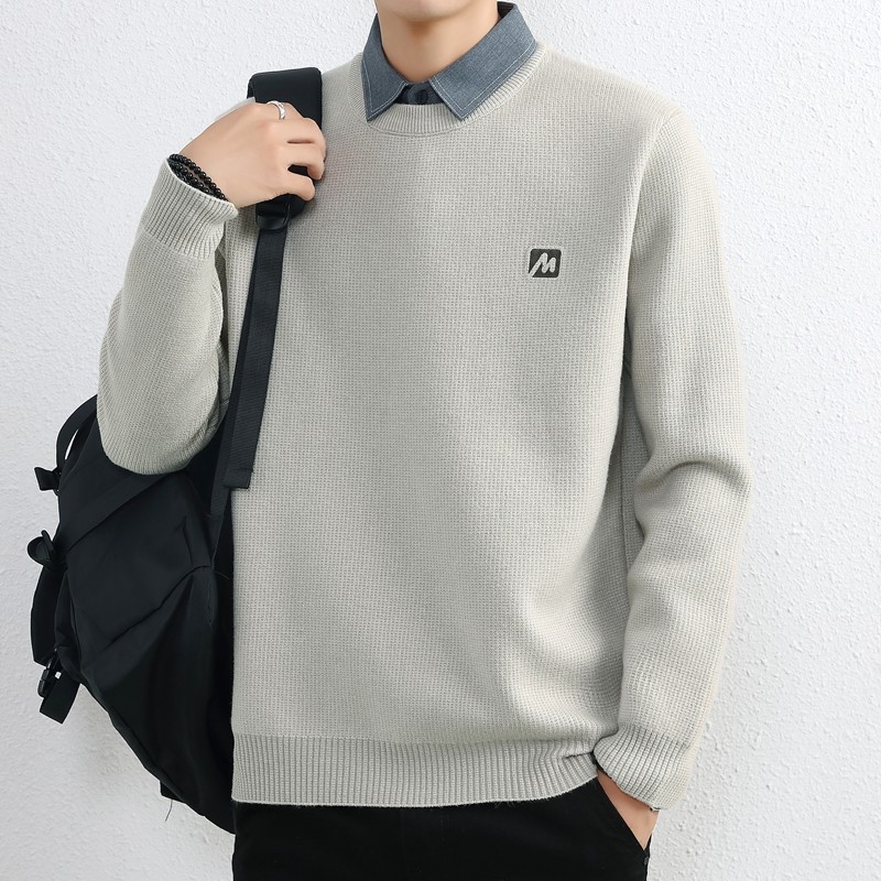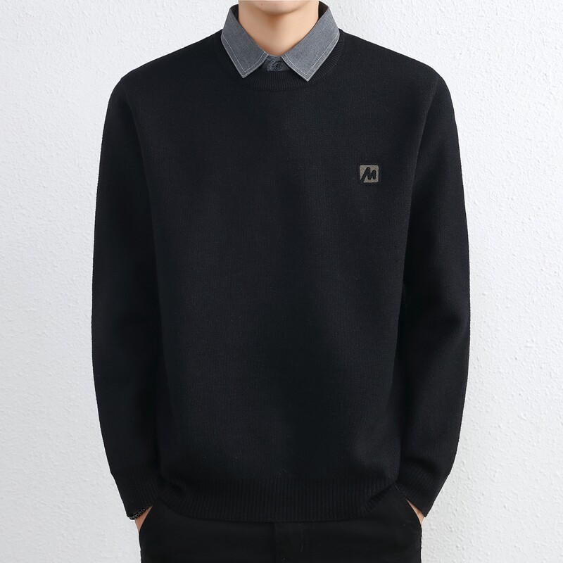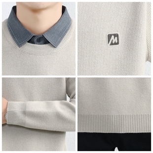 领毛衣加绒加厚保暖打底针织衫 衬衫 假两件男士 侨迪蒙拉高端秋冬款