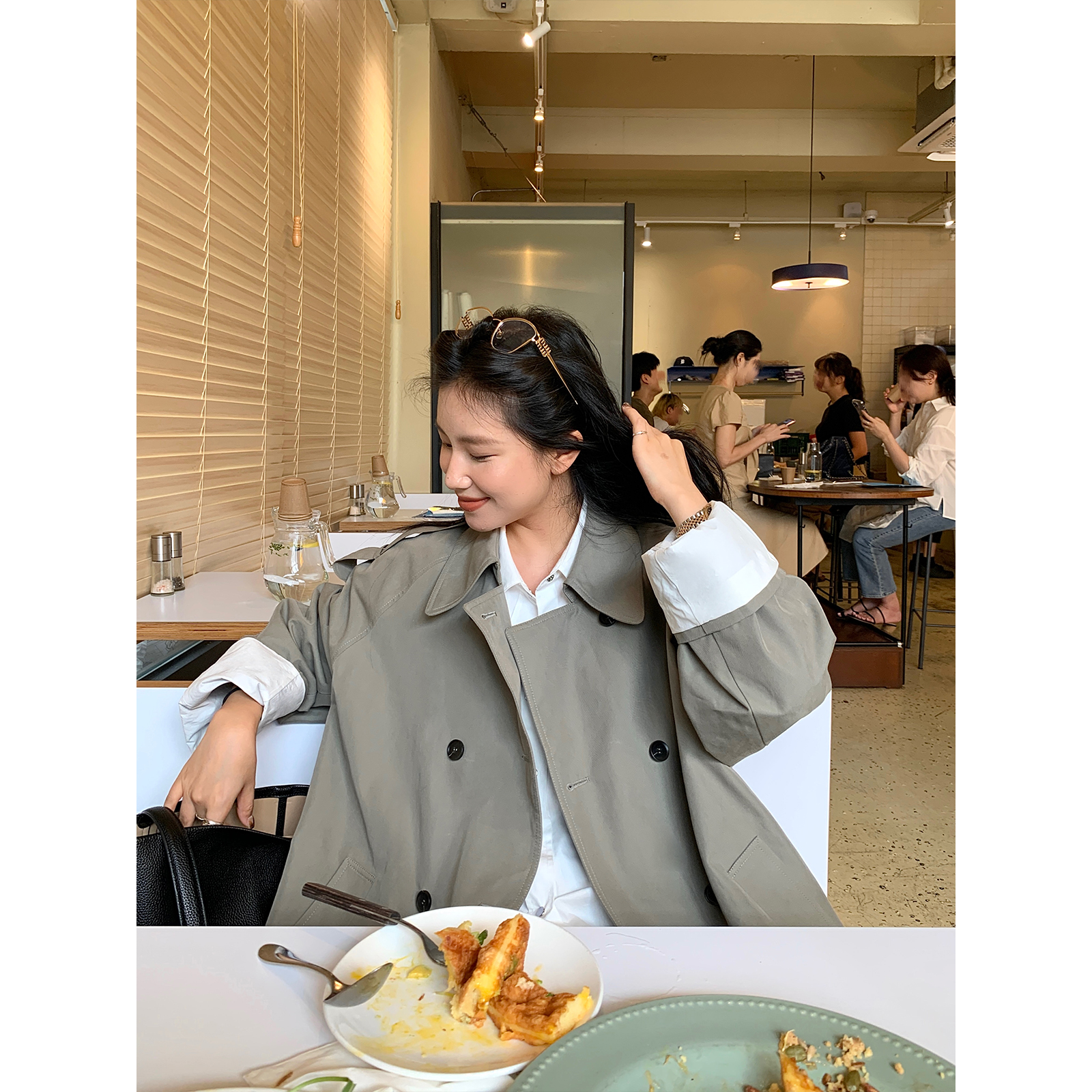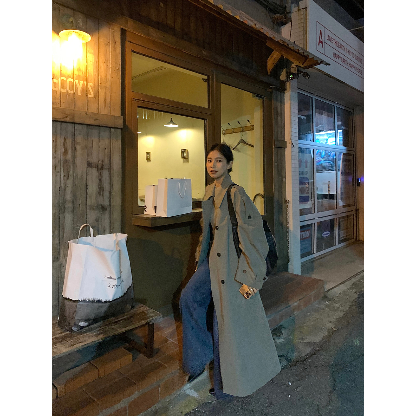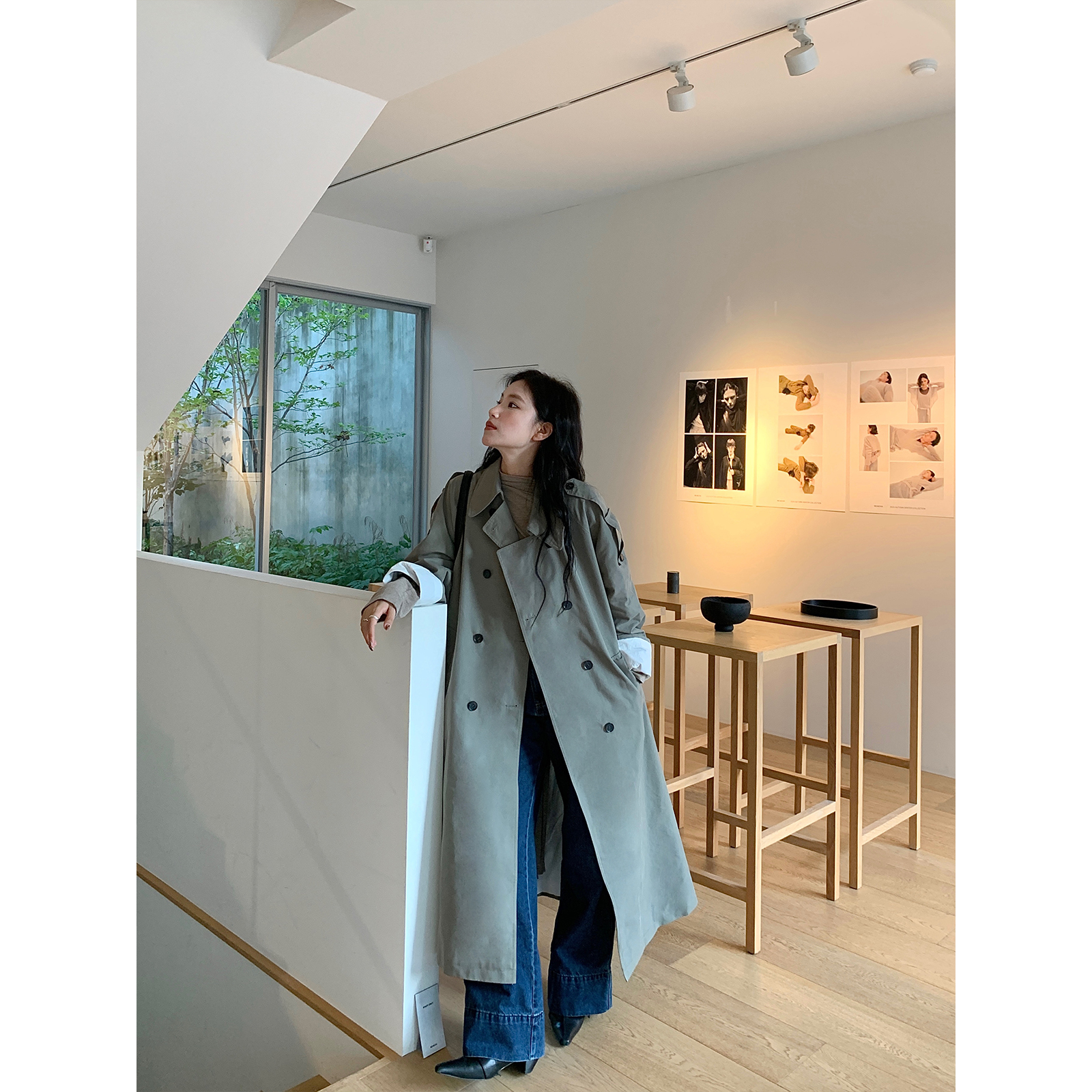 厚外套女 重磅私服灰绿色高个子风衣休闲宽松廓形长款 鄭大钱 晚秋