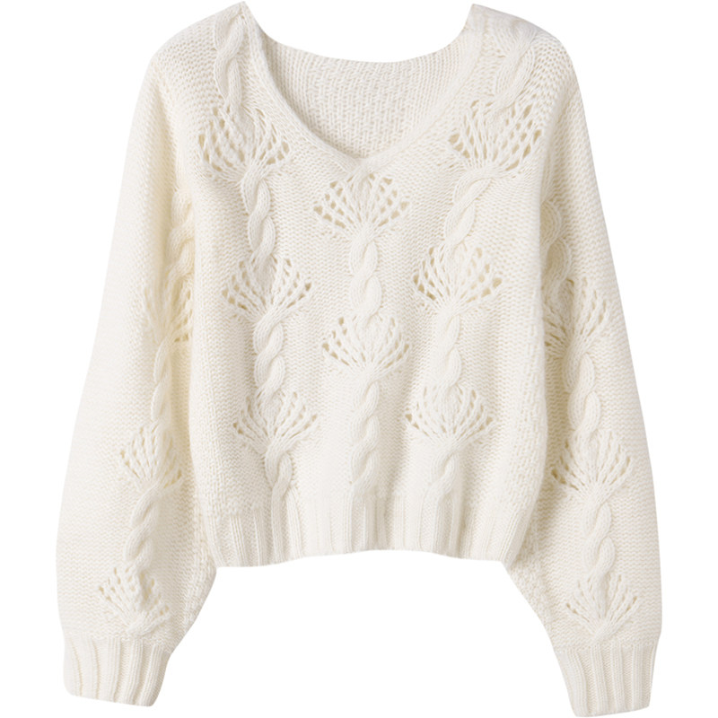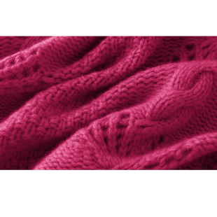 G5417 针织衫 400g山羊绒慵懒范 特种机镂空唯美玫红圆领宽松灯笼袖
