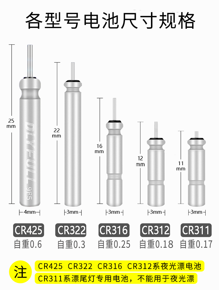 丹尼富CR425夜光漂电池322动力源316夜钓鱼漂浮标漂311电子漂电池