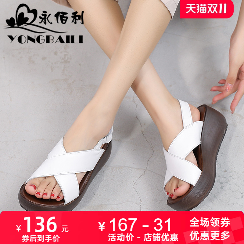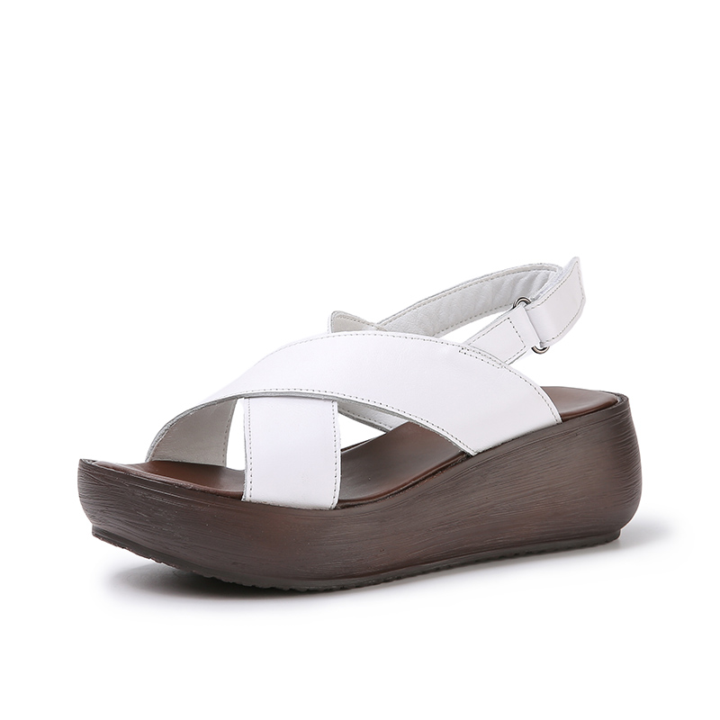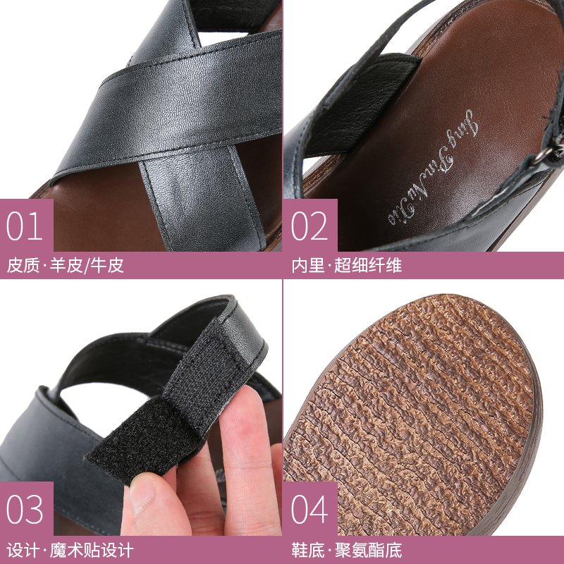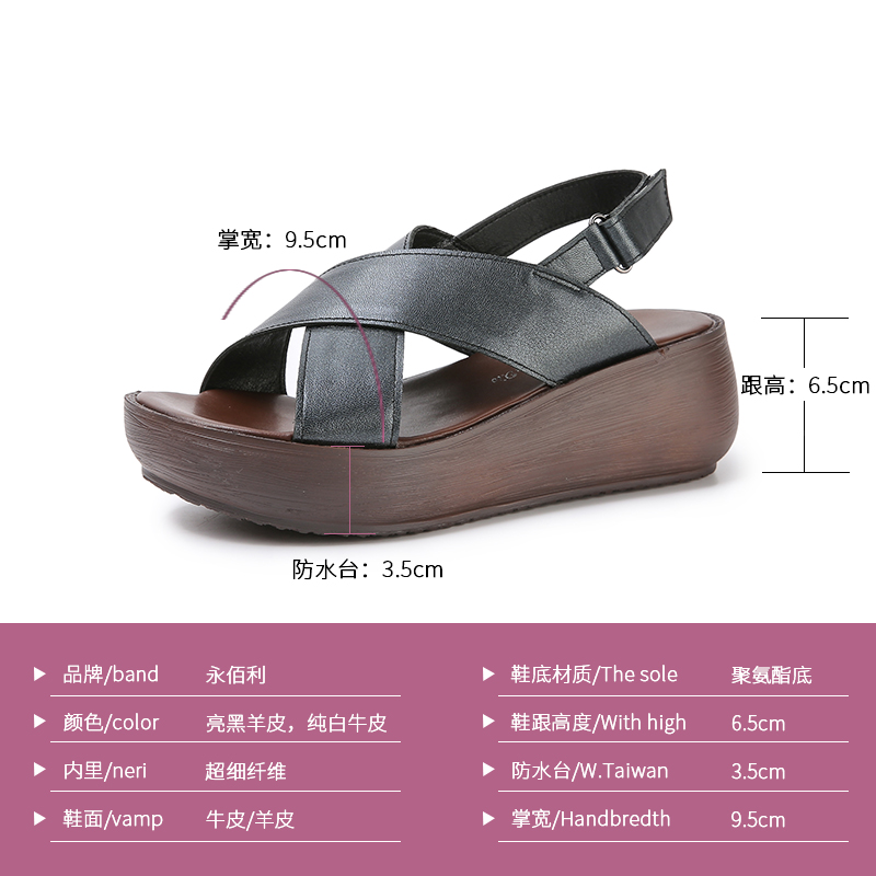 皮鞋 女坡跟高跟防水台舒适松糕女鞋 厚底手工真皮凉鞋 2025夏新款