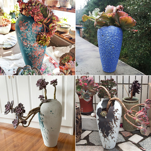 粗陶原土烧制无釉多肉植物陶瓷花盆简约创意盆栽绿植拇指套装 组合