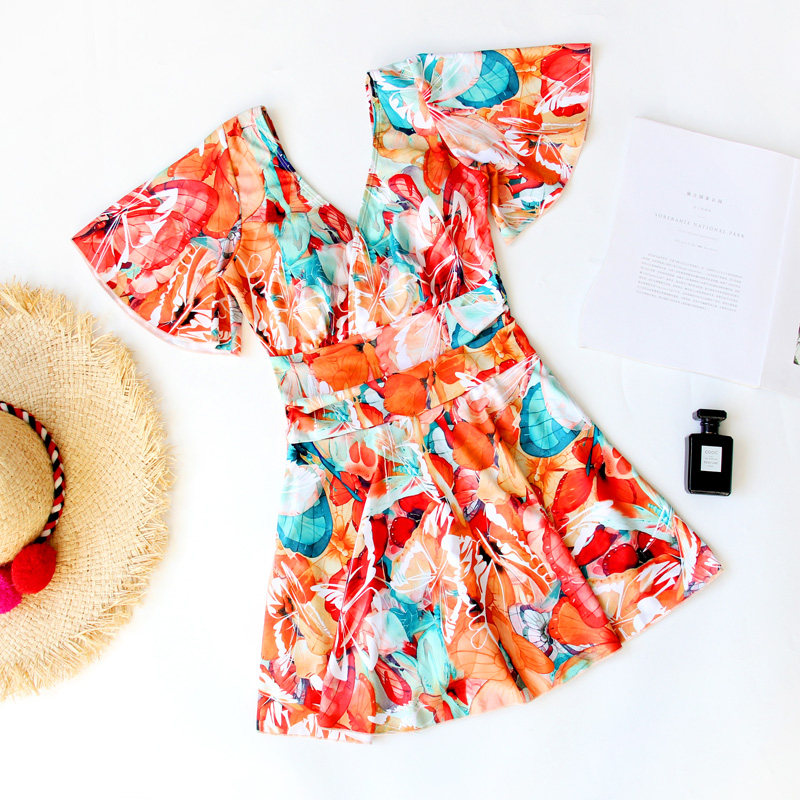atlanticbeach法式 复古泳衣女泡温泉度假连体性感露背显瘦高级感