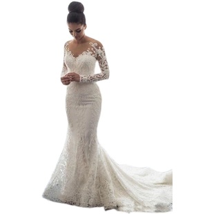 高定晚礼服女高端轻奢宴会主持人拖尾婚纱鱼尾性感挂脖长款 连衣裙