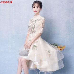 仙气质名媛连衣裙显瘦宴会晚礼服女中国风 夏季 中式 伴娘服2020新款