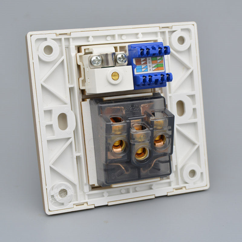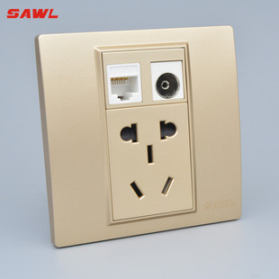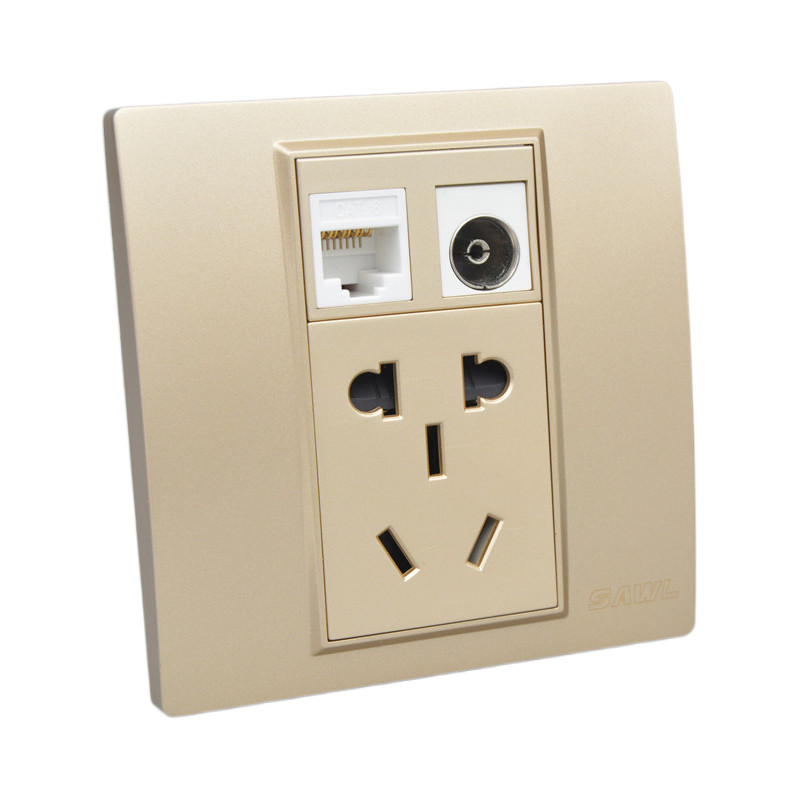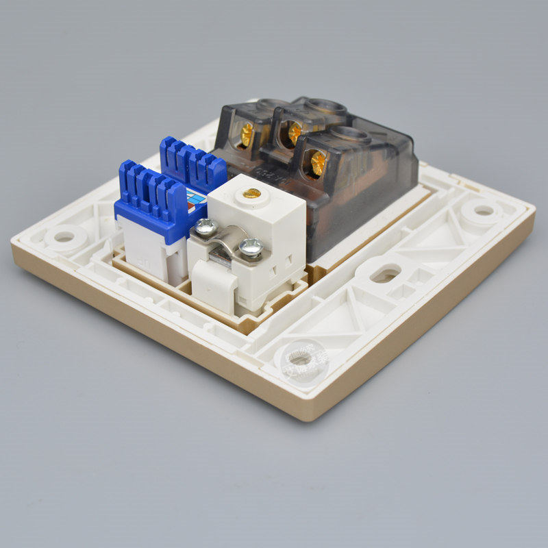 香槟色六类网络电视带五孔电源插座86型5孔千兆电脑电视网线面板
