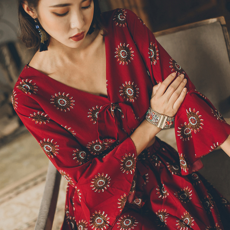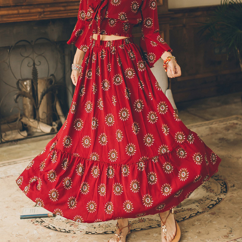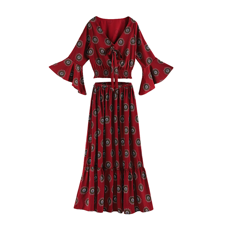 茶卡盐湖沙滩裙女海边度假民族风雪纺套装 两件套裙子仙泰国连衣裙