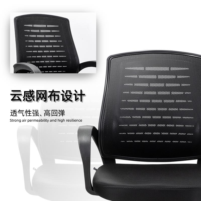 电脑椅家用办公椅护腰舒适靠背椅弓形网布椅棋牌室椅子会议会客椅