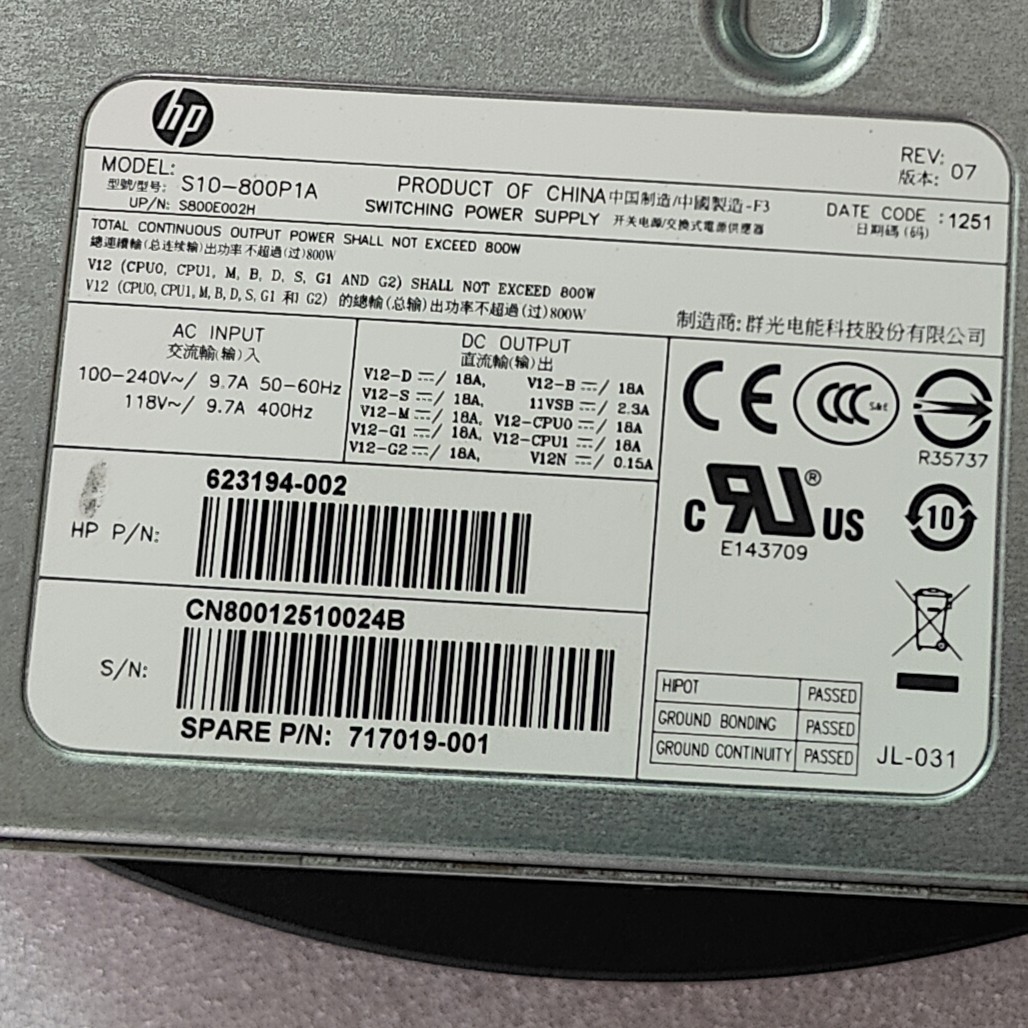 717019 001 S10 Z620 800P1A 632912 电源 623194