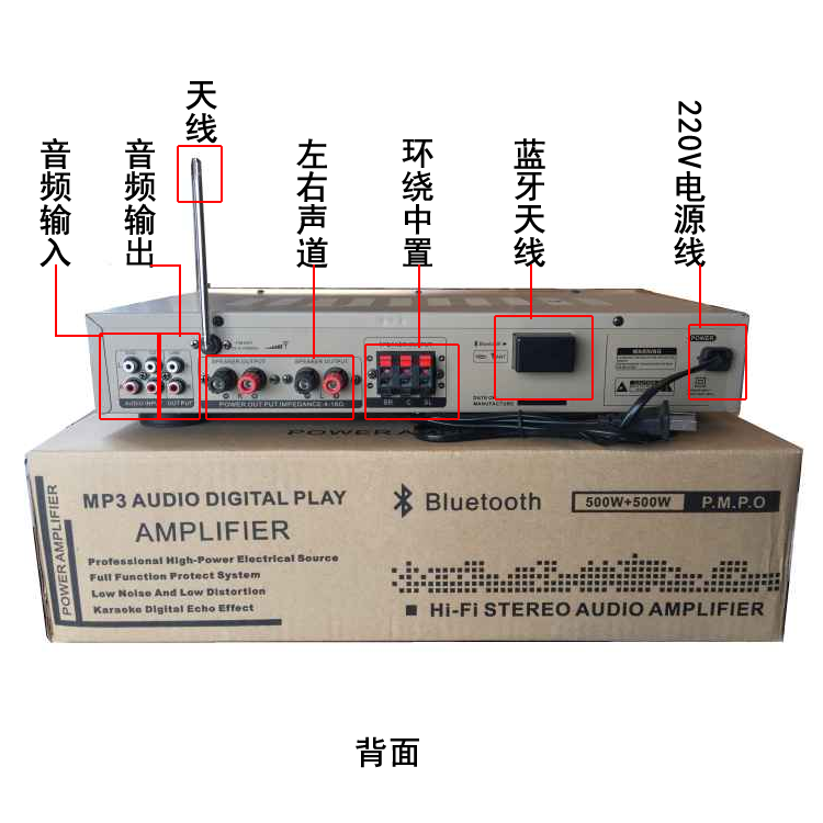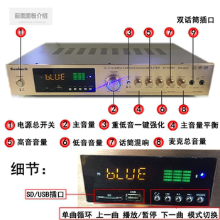220V大功率迷你小型蓝牙hifi功放机家用无损12V插卡U盘收音空放机