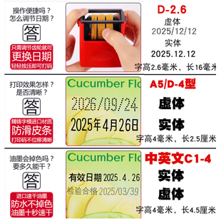 器D4喷码 4印码 机 机打生产日期改月饼瓶盖纸箱食品塑料袋出厂速干油墨日期印章C1 陈百万手动可调打码