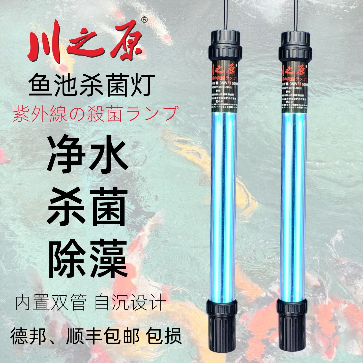 川之原杀菌灯锦鲤鱼池紫外线UV灭菌灯除藻净水20瓦30W40W100w自沉