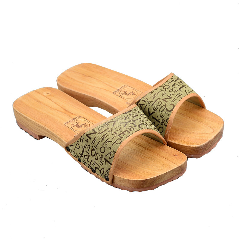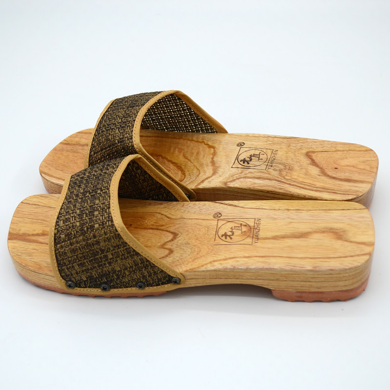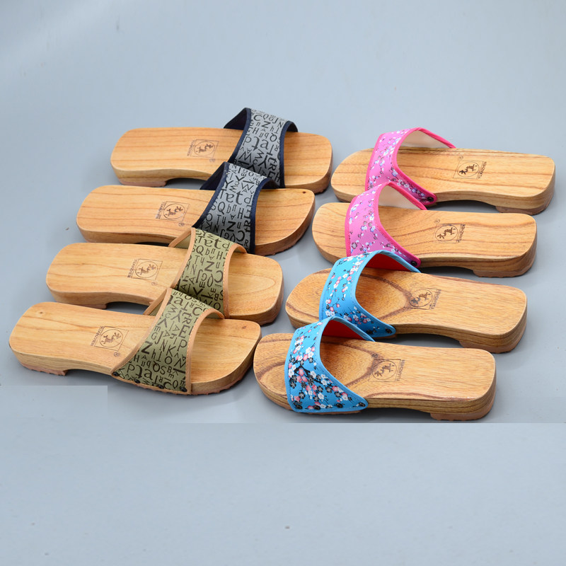 室内防滑洗澡用防水漆面木拖鞋 男女款 真手工木屐一字拖木鞋 元