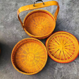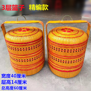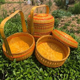 全竹青带盖竹编篮 手提送餐篮精编双层篮竹皮竹篮子竹制品婚庆篮