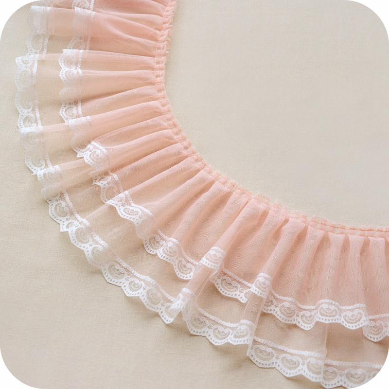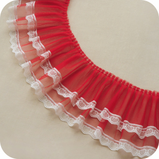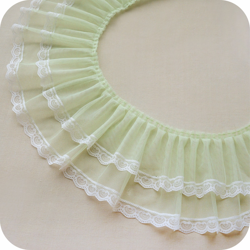 17新款 衣服辅料手工iy饰品绿色 白色CM双层网纱蕾丝立体缩褶花边