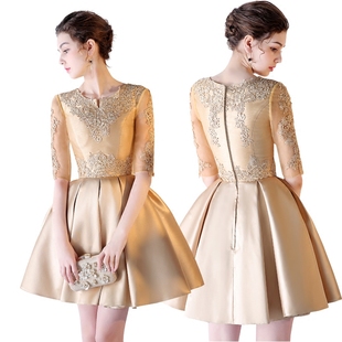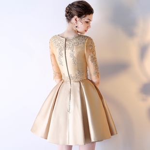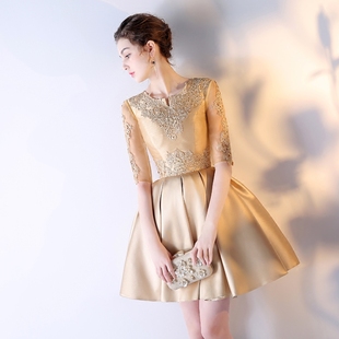 新娘敬酒服连衣裙女平时 金色年会礼服短款 宴会晚礼服2024新款 时尚