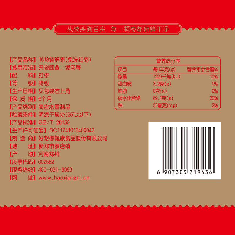 节日礼品 6星特级健康情大枣 好想你红枣 好想你1618克礼盒装