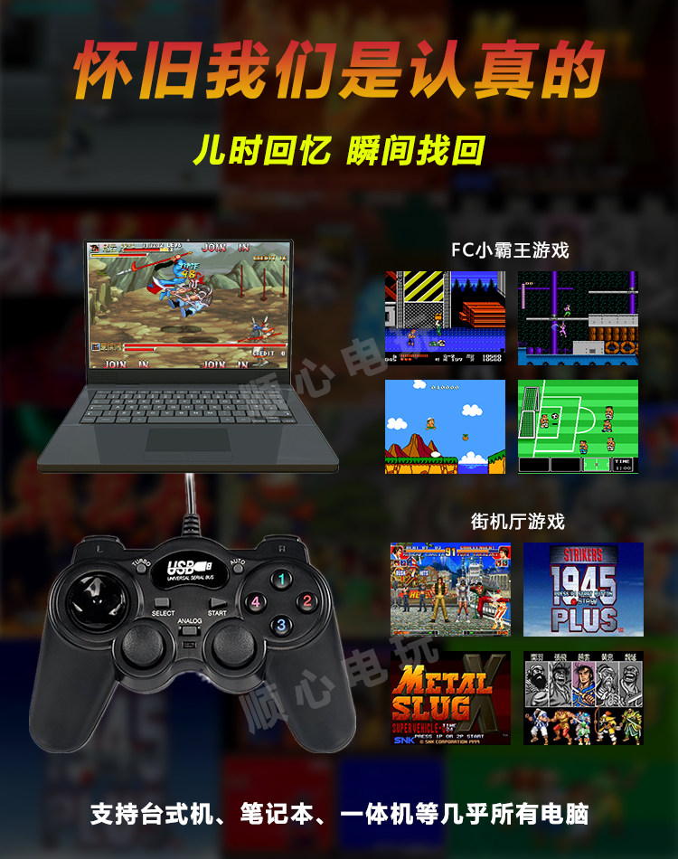 电脑PC怀旧游戏手柄连发笔记本台式 机FC街机MD复古USB自动有线款