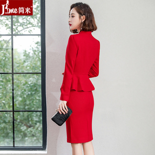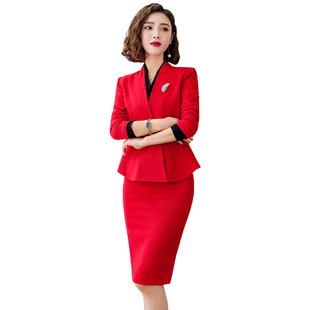 套裙气质女神范正装 西装 ol红色西服工作服 女2025春秋新款 职业套装