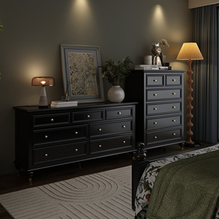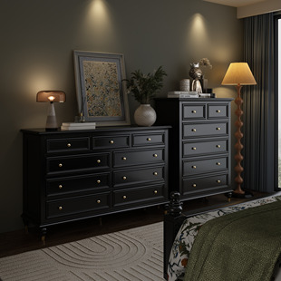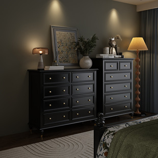 中古风收纳柜抽屉式 零食柜黑色五斗柜卧室多层床头柜 收纳箱免安装