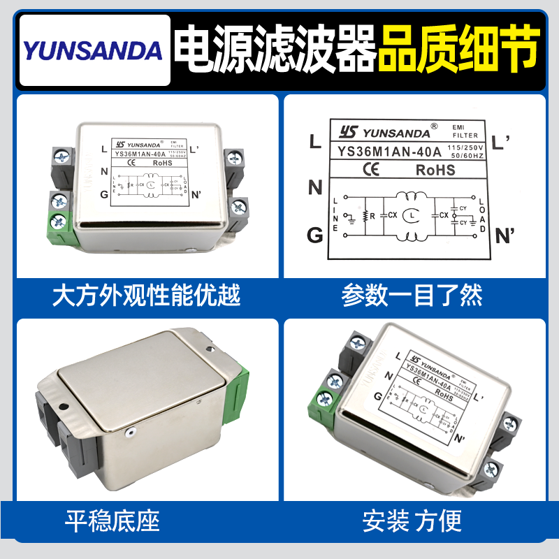 交流YS36M1AN 001 CW4E 40A 台湾YUNSANDA电源滤波器单相220v