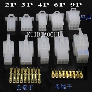 汽车线束插头6.3mm公母对接头插件4 2p连接器电动车快速对接端子