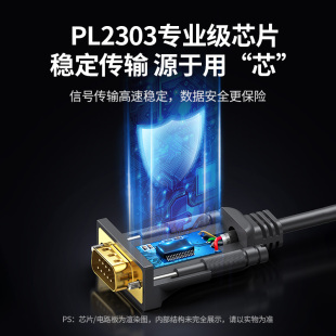 绿联usb转rs232串口线9针九针打印机pl2303通讯数据线db9公头母头母口接口工业级连接com转接头转换器转串口