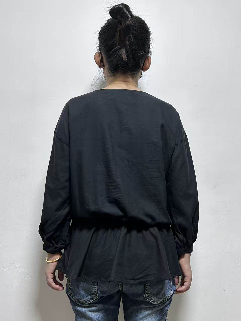 日单潮牌AZUL女士春秋天丝莱赛尔棉质混纺V领收腰套头衫
