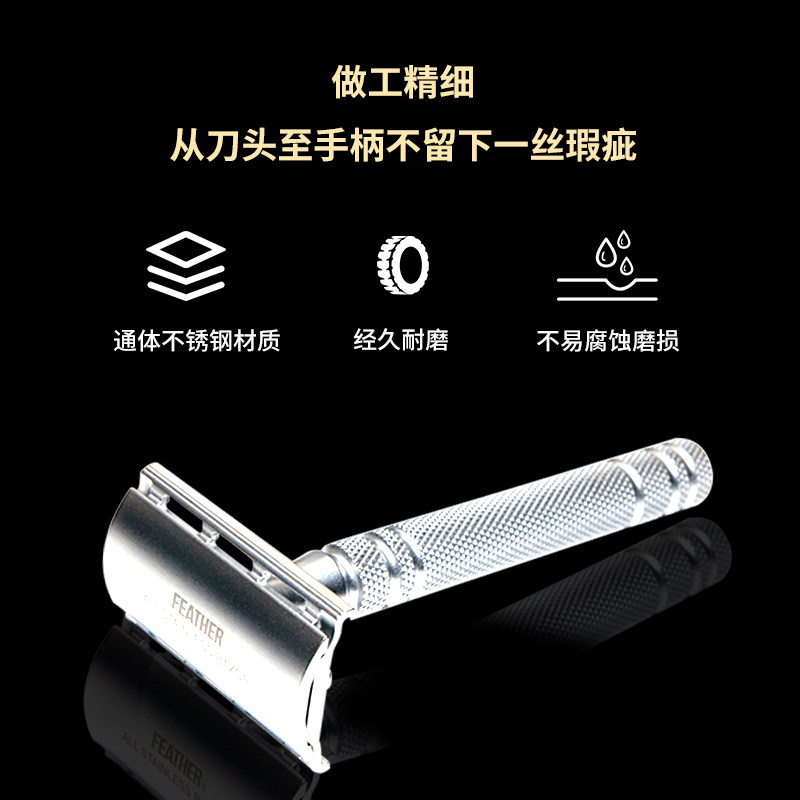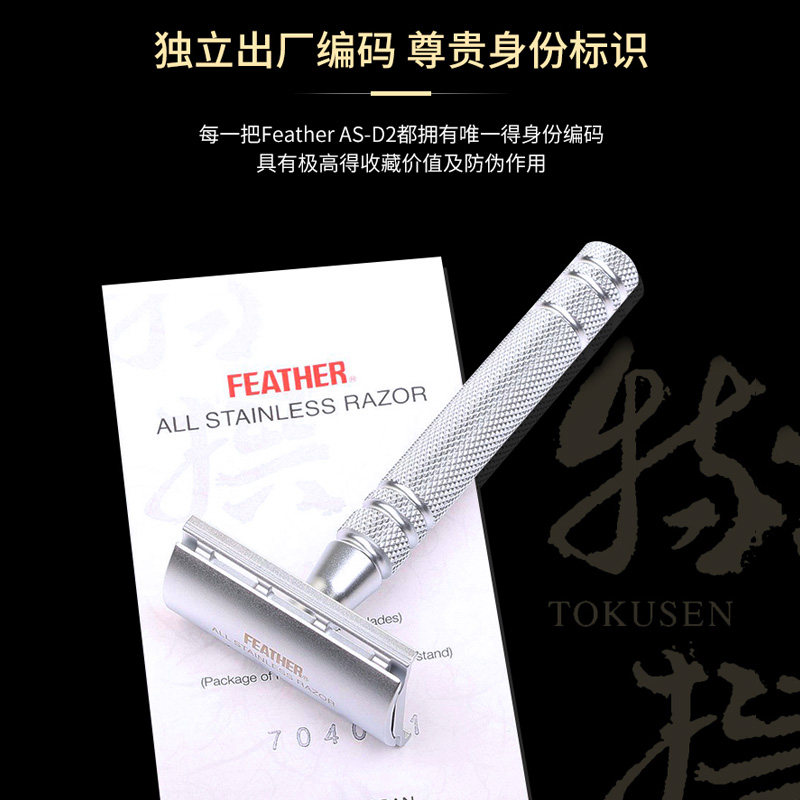 feather日本羽毛AS D2S全不锈钢剃须刀手动刮胡刀带5片刀片底座款