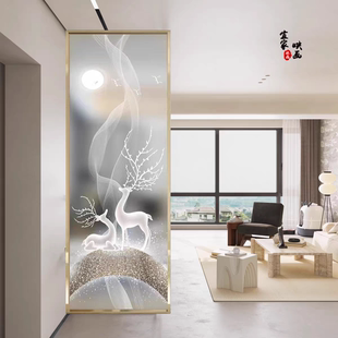 入户门玄关艺术画客厅简约长虹玻璃屏风隔断柜现代轻奢金属装 饰架