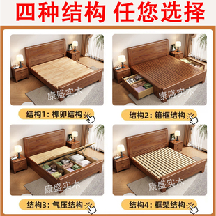 新中式 实木床榫卯床1.8米大床1.5M双人床经济型简约现代家具储物