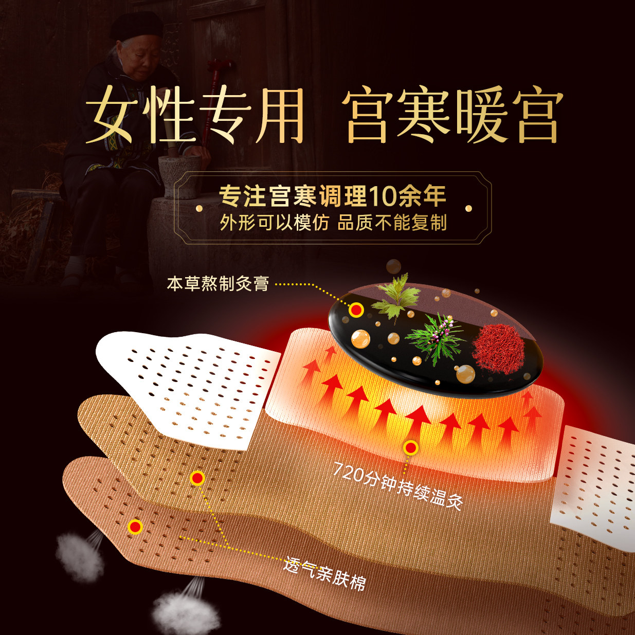 久苗宫寒调理暖宫贴益母草艾草热敷贴大姨妈艾灸贴 3盒周期装