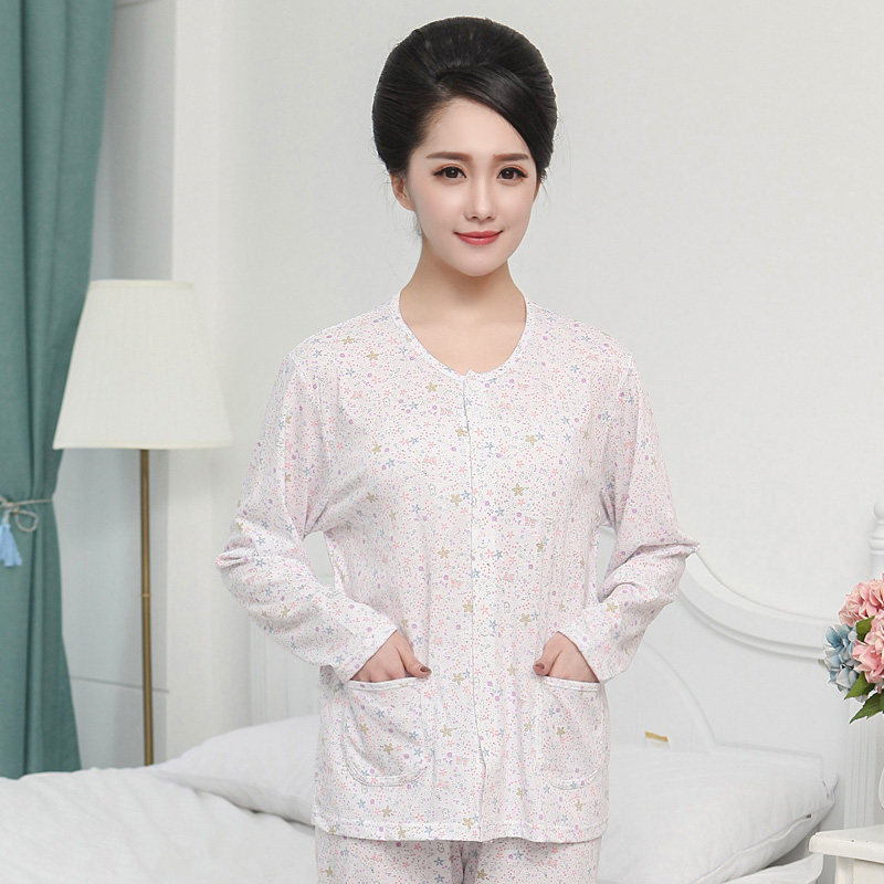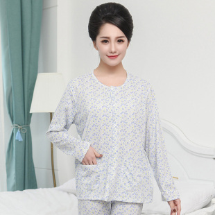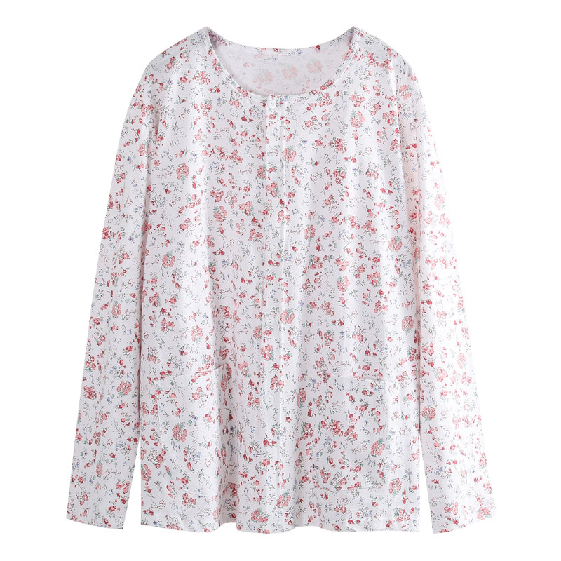 薄款 空调衫 开襟秋衣睡衣开襟家居服 纯棉长袖 女士中老年妈妈开衫