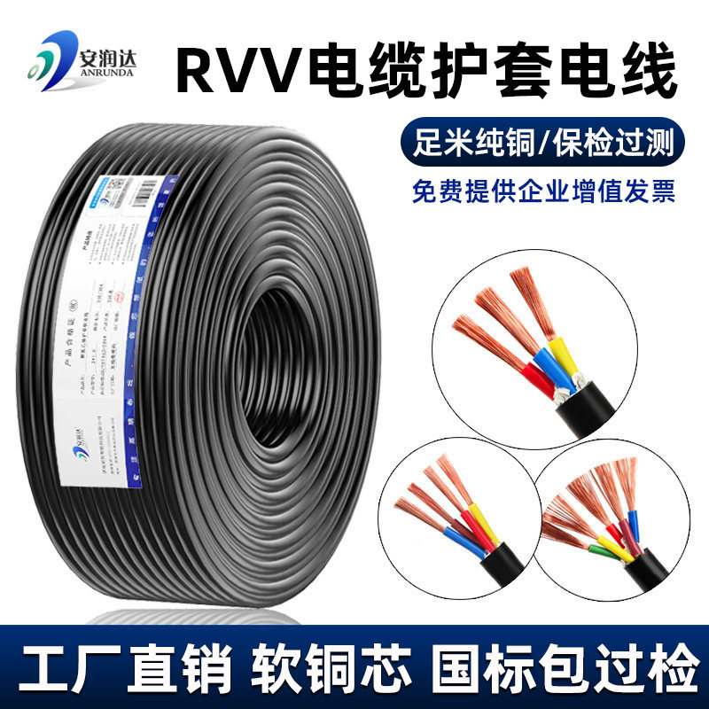 0.75 4芯0.5 2.5平方护套家用电源线 国标纯铜RVV电线软电缆线2