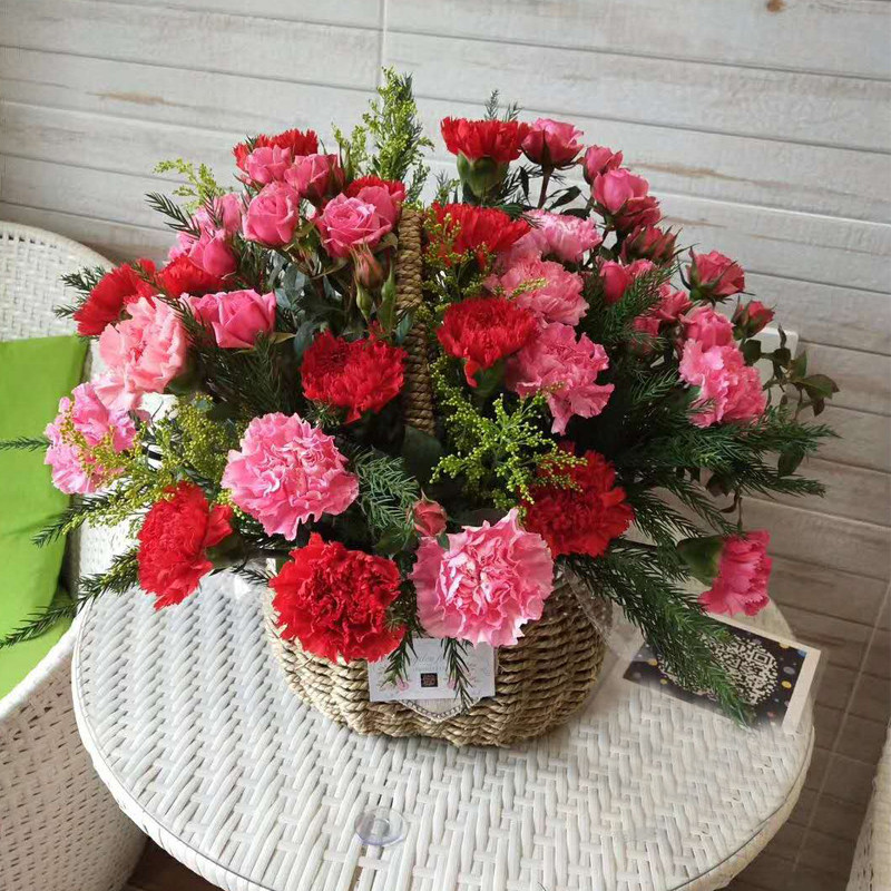 花篮康乃馨威海鲜花速递同城花店送花荣成乳山文登石岛生日