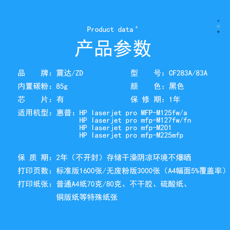 震达适用127a打印机硒鼓m225dn惠普m125nw晒鼓hp pro83a可加粉127粉盒m127m201d mfp125a cf283a laserjet