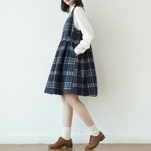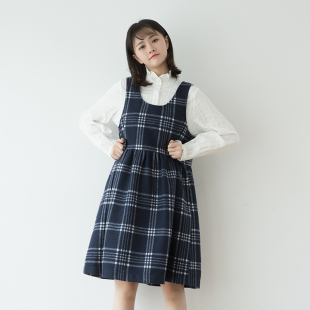 SUIN2020春夏新文艺宽松学生小个子格子a字圆领无袖 背心连衣裙女