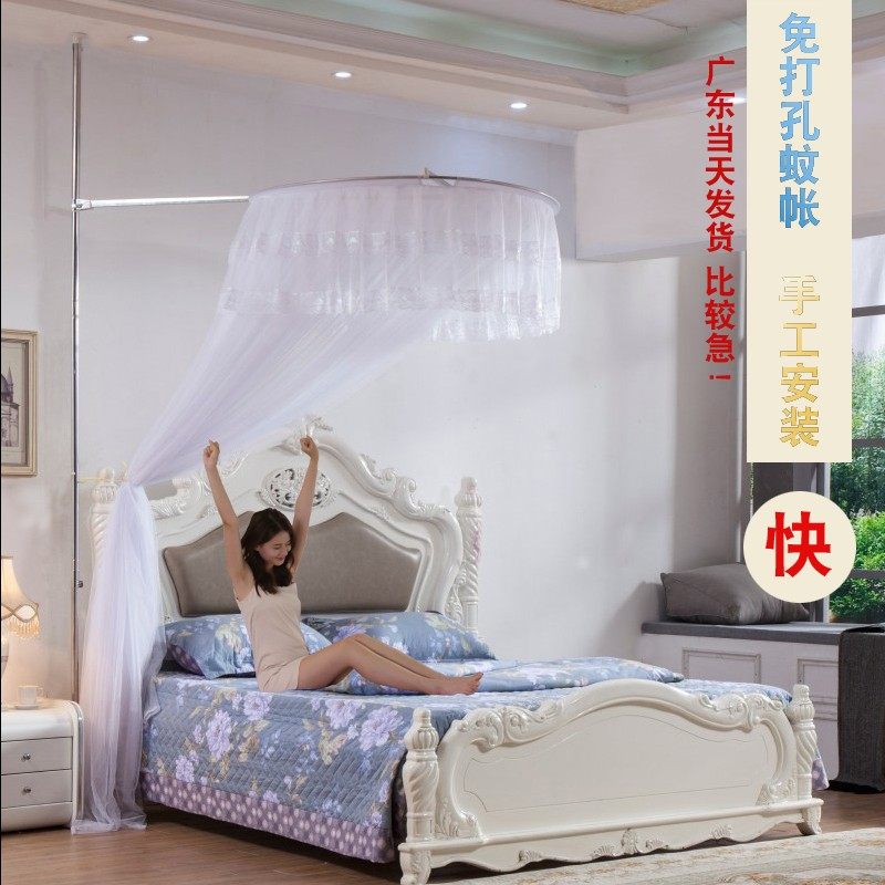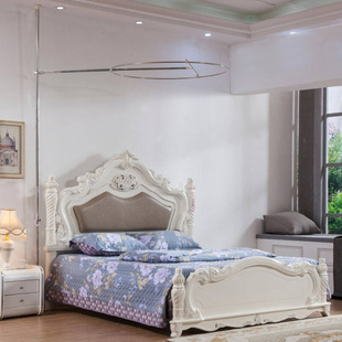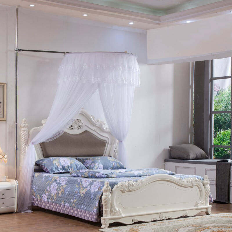 蚊帐不锈钢支架加厚天地可调高伸缩圆顶落地1.8米双人床1.5m家用