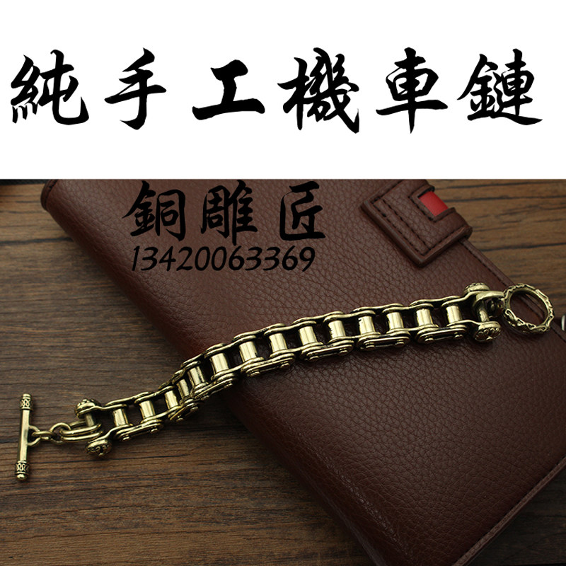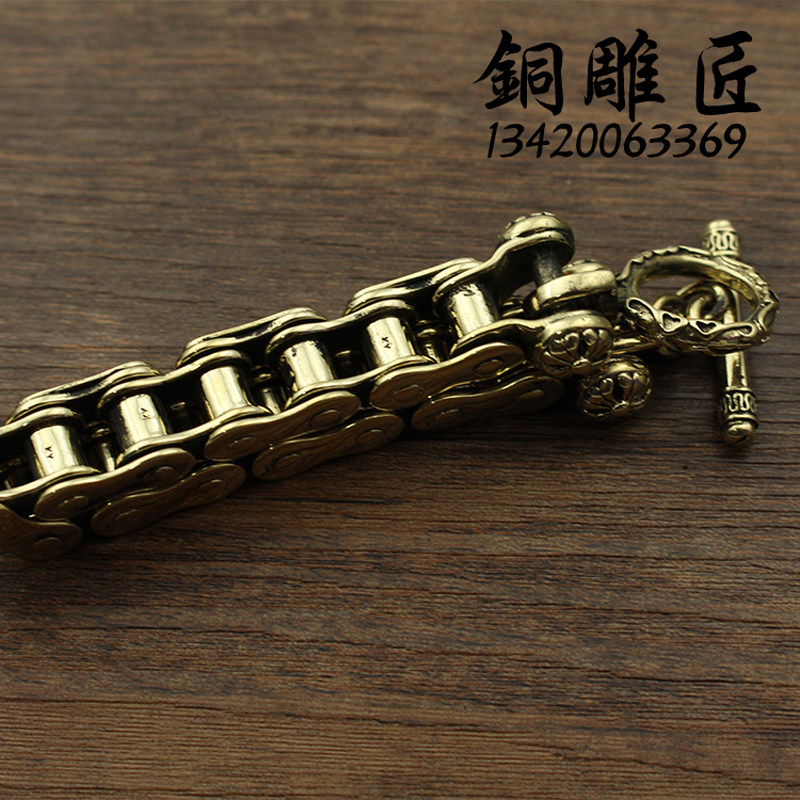 纯黄铜机车链条手链男士 潮流复古朋克 摩托车单车机车链条手饰个性