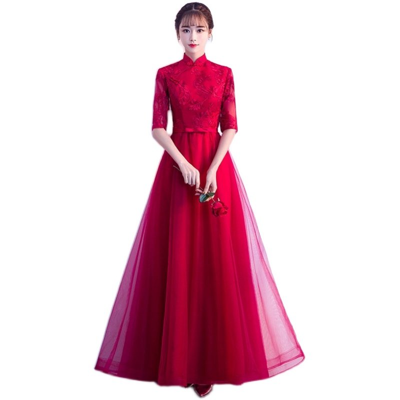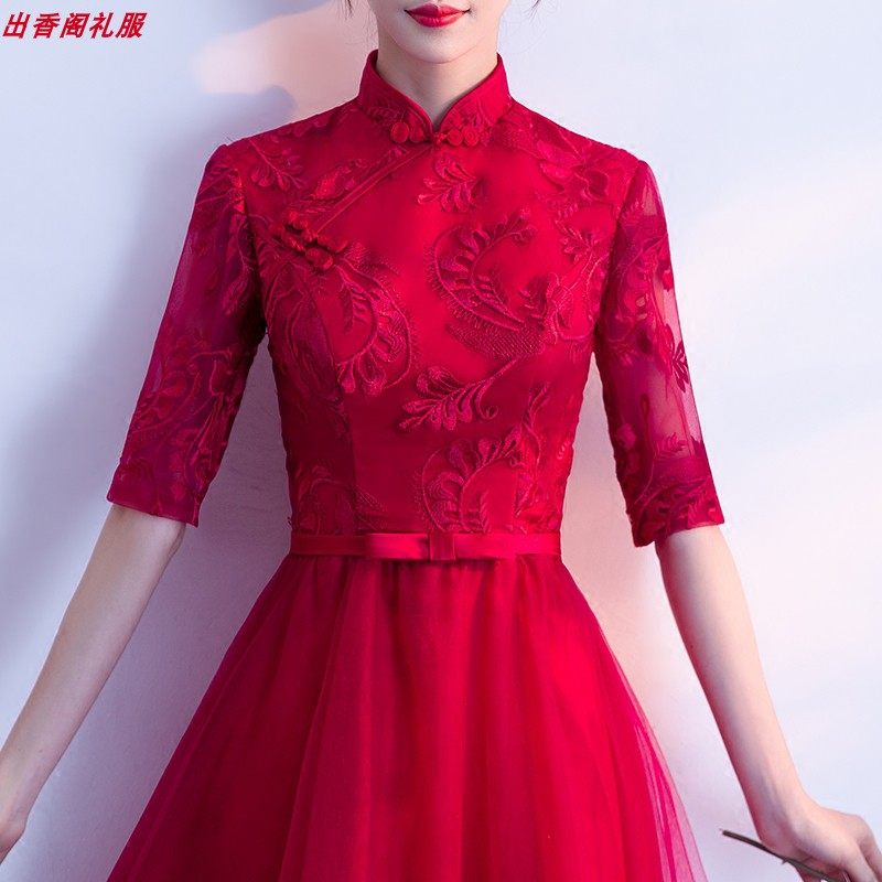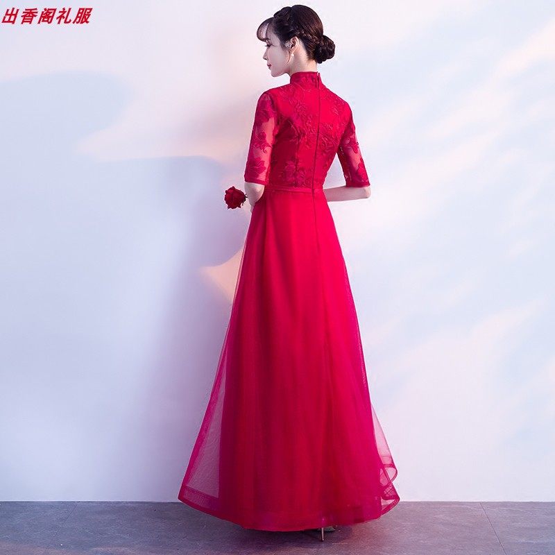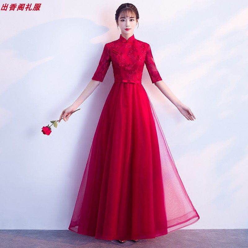 结婚公主中式 红色长款 晚礼服裙女 秋季 出阁敬酒服新娘旗袍2020新款