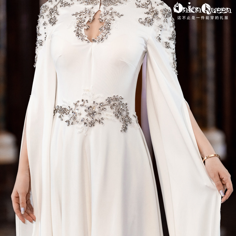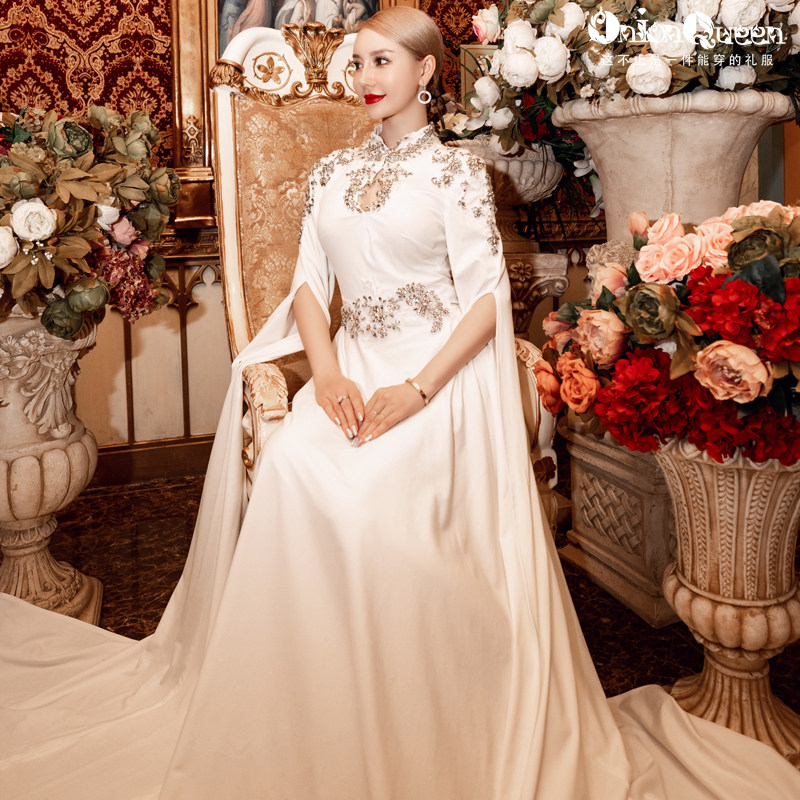 拖尾敬酒服年会大气生日 水袖 出租定制白色晚礼服裙女2020新款 中式
