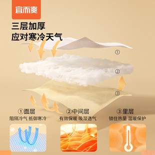 夹棉加厚纯棉打底秋衣秋裤 宜而爽三层暖棉保暖内衣男女情侣款 套装