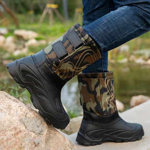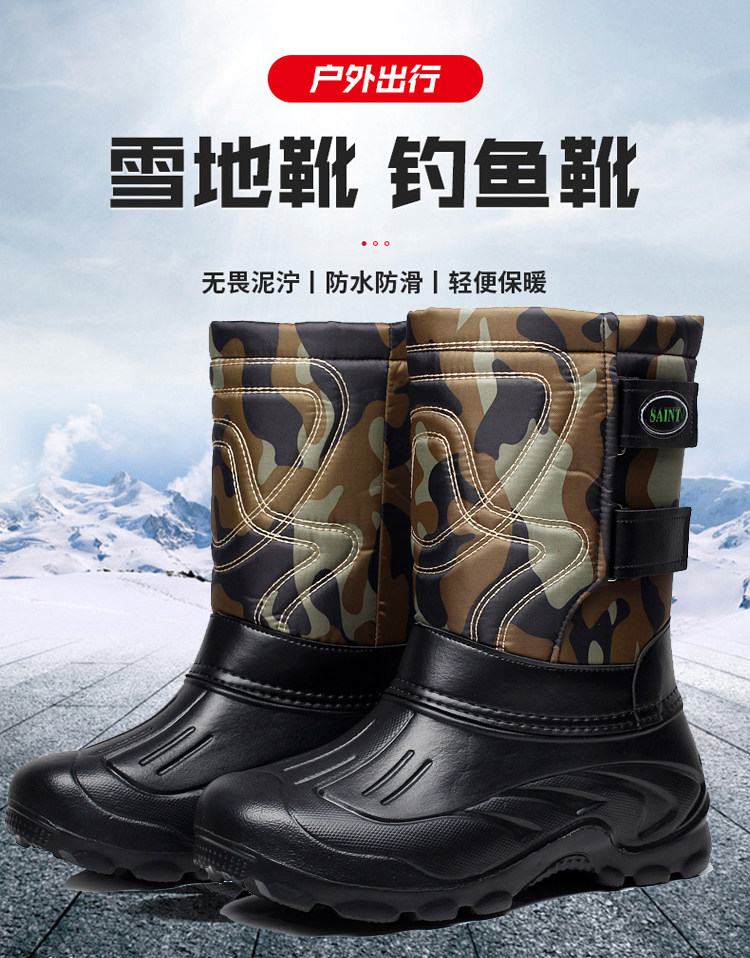 冬季 中筒雪地靴保暖男靴防水防滑保暖加厚短靴厚底钓鱼靴户外 新款