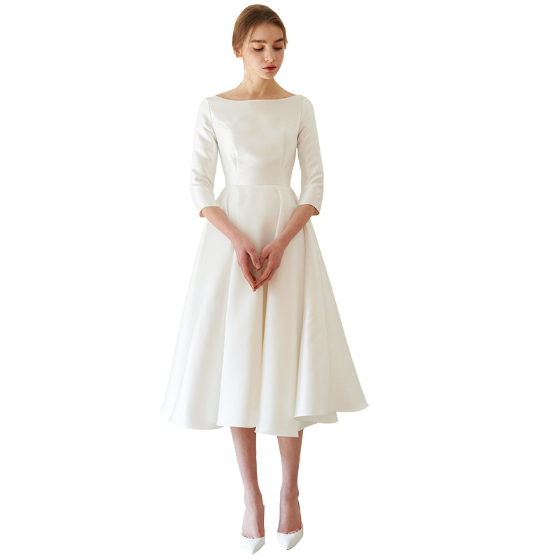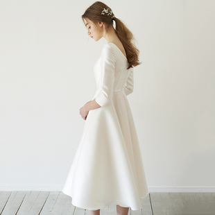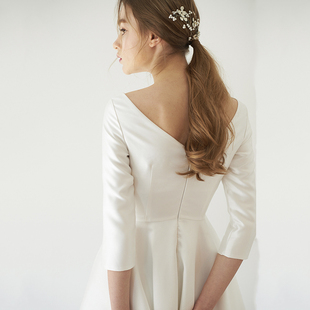 敬酒礼服裙年会演出服简约复古旅街拍保守 缎面轻婚纱中袖 法式 新款