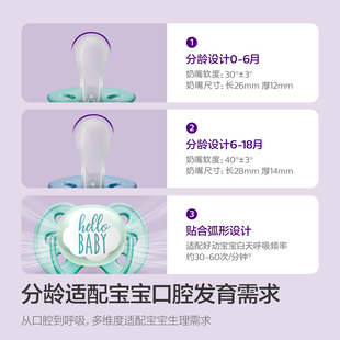 飞利浦新安怡安抚奶嘴儿0到3 6个月以上防胀气新生婴幼儿夜用扁头
