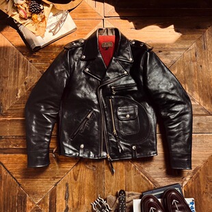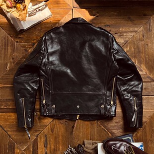 真皮皮衣 兵库原生态无涂牛皮J24翻领斜拉机车夹克短款 经典 重现