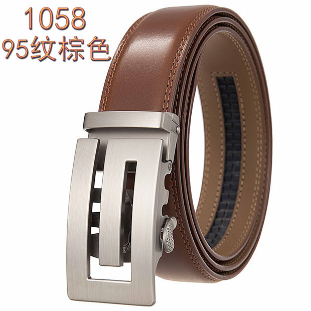 时尚 带潮 百搭棕色皮带男自动扣真皮咖啡色腰带牛皮青年商务休闲裤